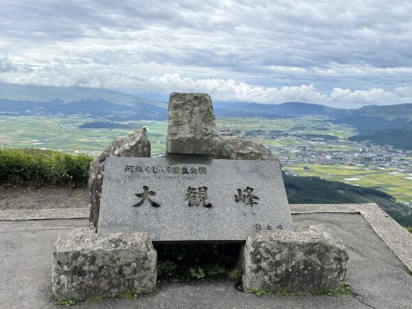 直下に眺める阿蘇谷(阿蘇市街地)との標高差は約400mにもなる絶景スポットです。