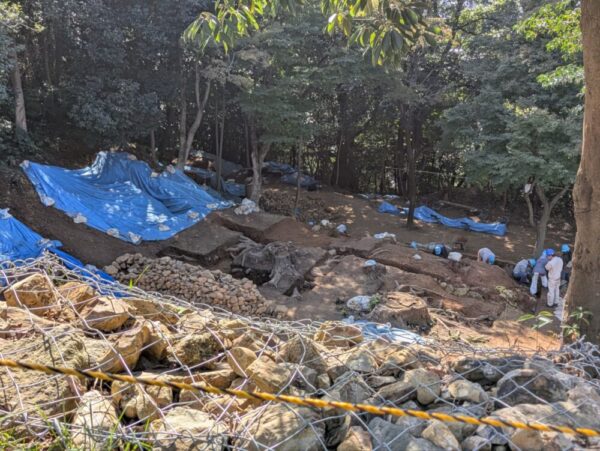 石垣の発掘調査中でしばし調査の様子を見てきました。