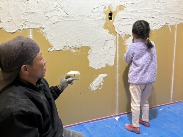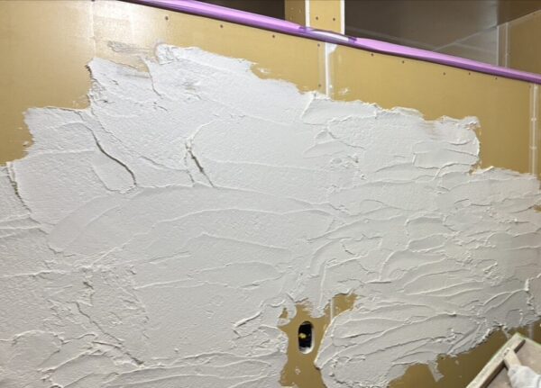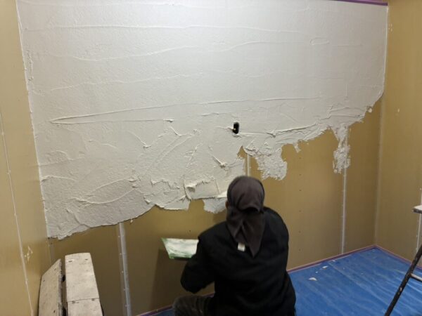 お施主さまが塗った壁はそのまま残すこともできますが、今回はプロの職人さんにキレイに仕上げてもらいました。