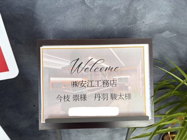 まず、会場に着くと、なんと入口に「ウェルカムボード」