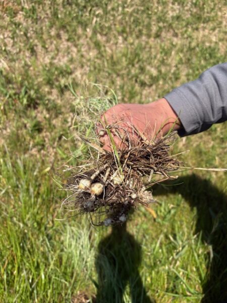 ひげ根や一緒にとれた雑草をぱっぱと省き
