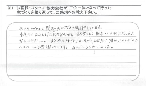 Q.家づくりを振り返って、ご感想をお教えください。